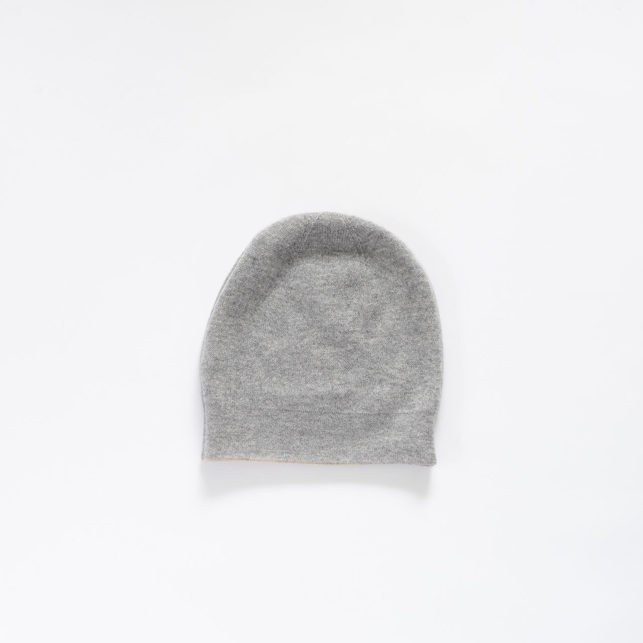 カシミヤ100% ユニセックス リバーシブルビーニー(ナチュラルライトブラウン×グレー)