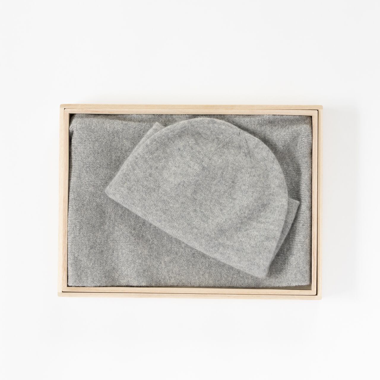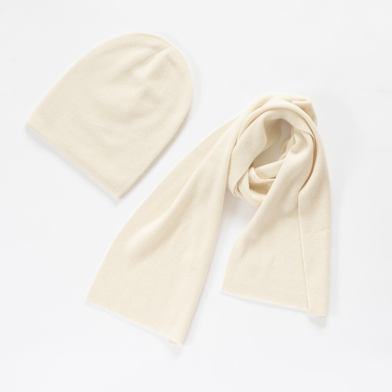 カシミヤ100% マフラー&ビーニーセット(ホワイト)