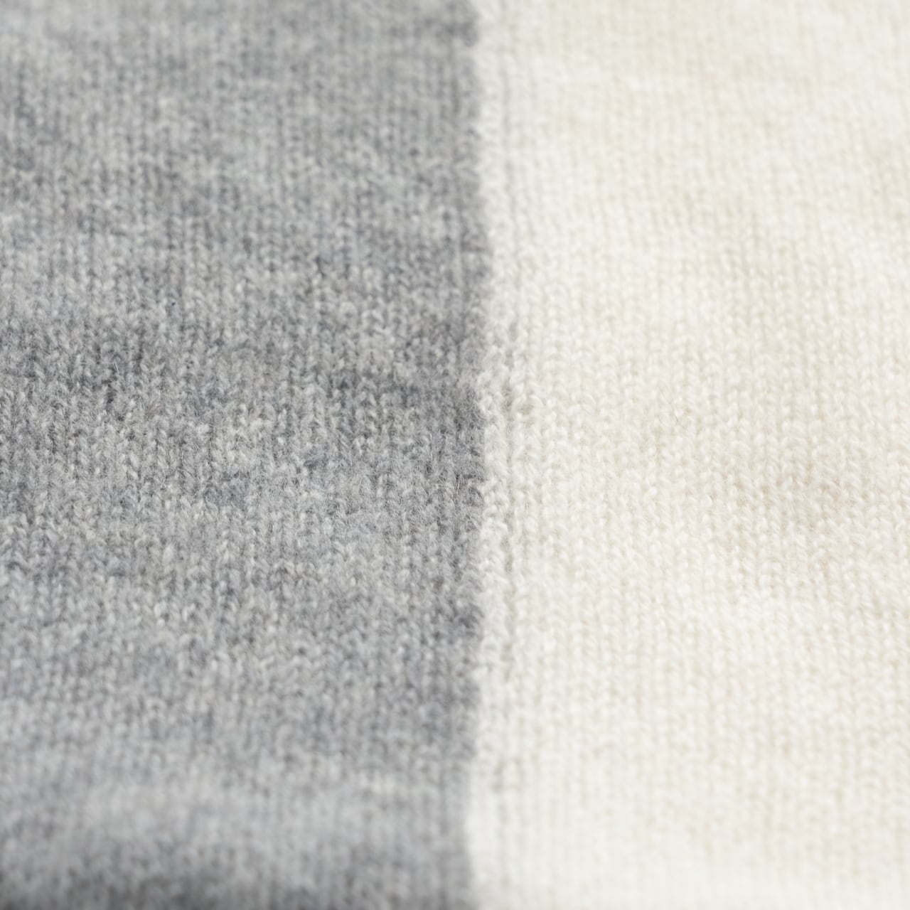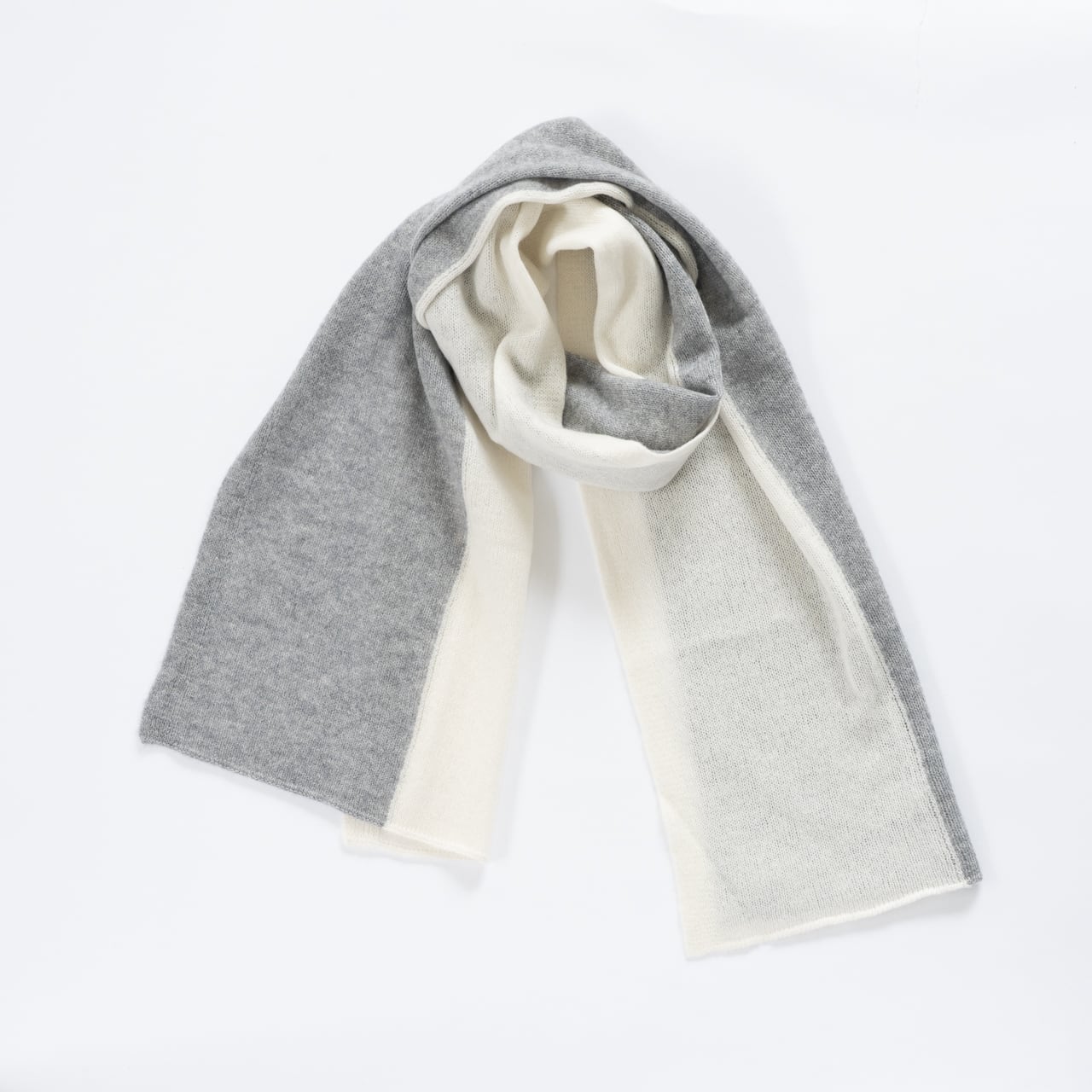 カシミヤ100% ガーゼバイカラーマフラー(ホワイト×ライトグレー)
