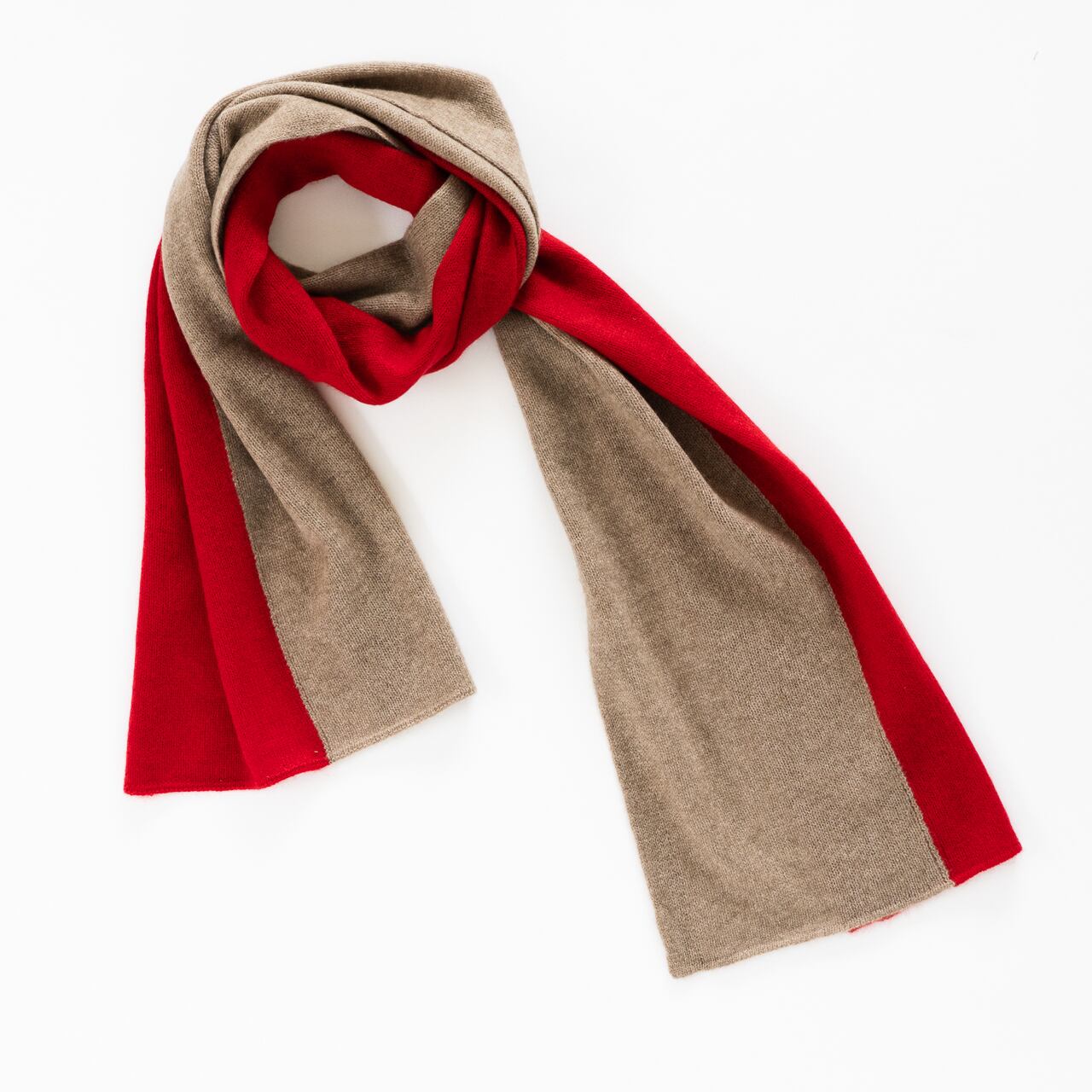 カシミヤ100% ガーゼバイカラーマフラー(レッド×ナチュラルブラウン)