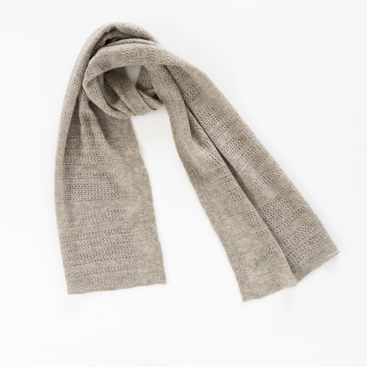 ヤク100%透かし編みマフラー(グレージュ)
