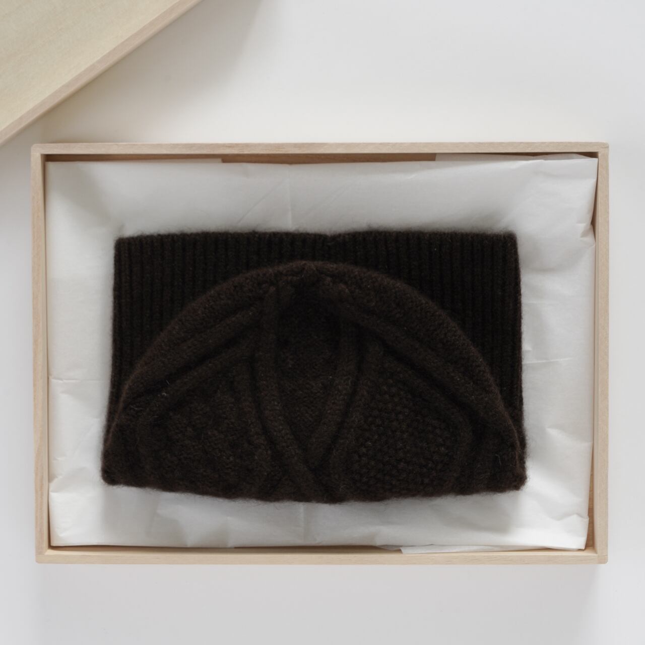 ローゲージでざっくりと編み上げていますが、驚くほど軽やかな被り心地。