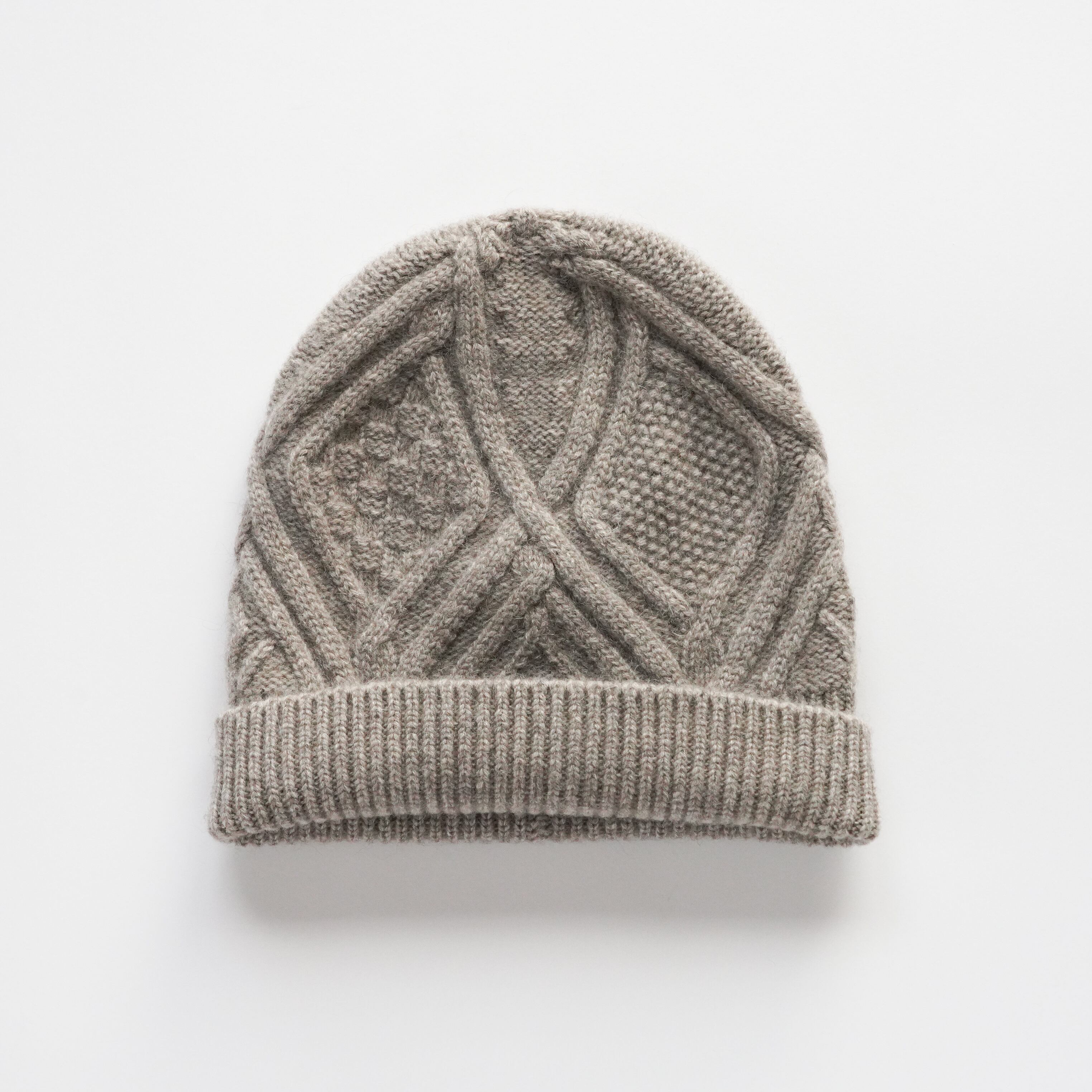 ヤク100% アラン編み ニットキャップ(グレージュ)
