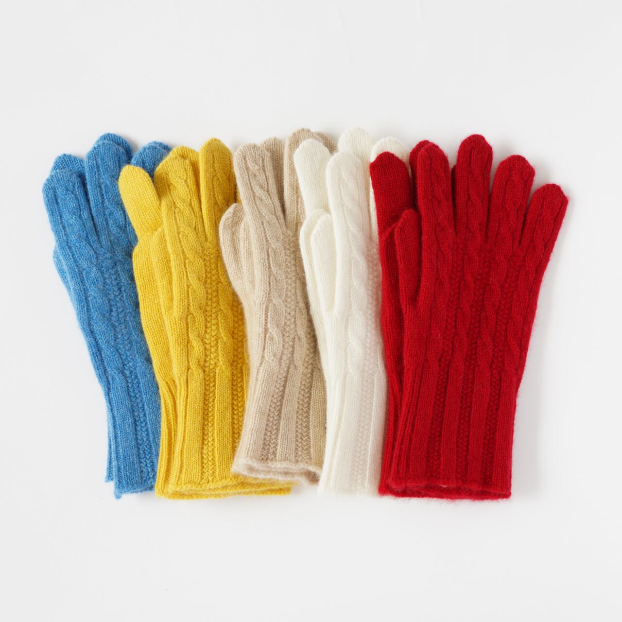 カシミヤ100%ケーブル編みグローブ(レッド)