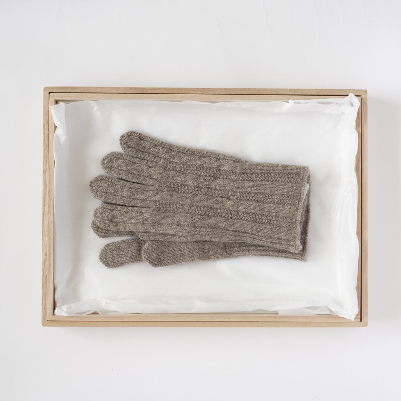 ケーブル編みが引き立つよう、カラーはグレージュのみ。